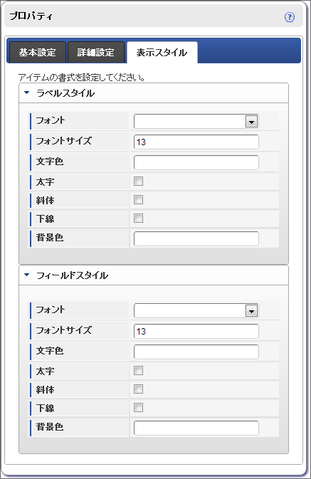 - この項目の設定値は、画面アイテムの入力補助ラベルと違い、ラベル一覧機能では自動的に取得・編集されません。