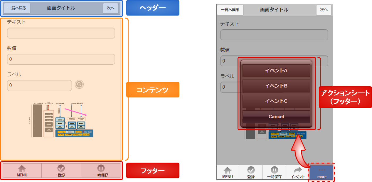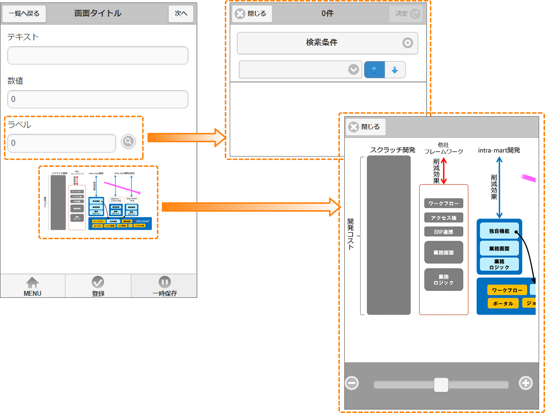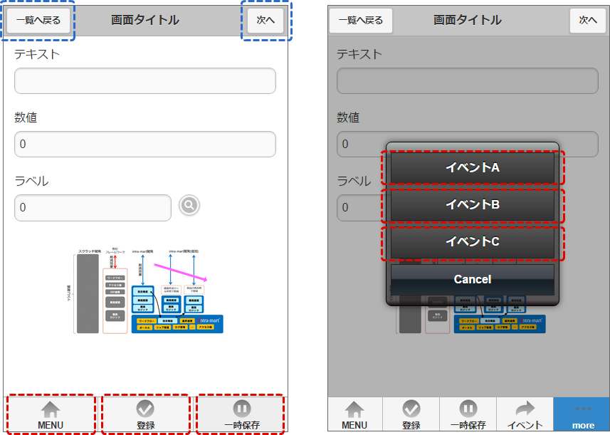 - モバイルフレームワークの詳細については、「 スクリプト開発モデル プログラミングガイド 」の「 UI(スマートフォン開発ガイドライン) 」を参照してください。