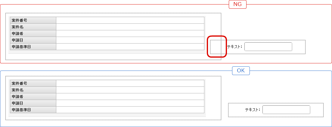「フォーム・デザイナ」画面で画面アイテム「明細テーブル」のアイテムの範囲(「フォーム・デザイナ」画面上で選択すると赤の点線で囲まれる領域)は他の画面アイテムと重ねて配置しないでください。他の画面アイテムと重ねて配置した場合、アプリケーションの実行時に明細テーブルに行を追加・削除したタイミングで重なっている画面アイテムが上下に移動して表示され、レイアウトが崩れる可能性があります。 「フォーム・デザイナ」画面で画面アイテム「ファイルアップロード」のアイテムの範囲(「フォーム・デザイナ」画面上で選択すると赤の点線で囲まれる領域)は他の画面アイテムと重ねて配置しないでください。他の画面アイテムと重ねて配置した場合、アプリケーションの実行時にファイルアップロードにファイルを追加・削除したタイミングで重なっている画面アイテムが上下に移動して表示され、レイアウトが崩れる可能性があります。 「フォーム・デザイナ」画面でIM-Workflowの画面アイテム(案件情報表示、添付ファイル表示、フロー画像表示、処理履歴、確認履歴、印影表示)のアイテムの範囲(「フォーム・デザイナ」画面上で選択すると赤の点線で囲まれる領域)は他の画面アイテムと重ねて配置しないでください。他の画面アイテムと重ねて配置した場合、申請時と承認・参照・確認時に重なっている画面アイテムの表示位置がずれてレイアウトが崩れる可能性があります。