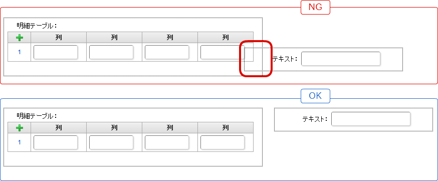 画面アイテム「明細テーブル」、「ファイルアップロード」、IM-Workflowの画面アイテムを利用する場合には、他の画面アイテムと重ねて配置しないようにしてください。¶