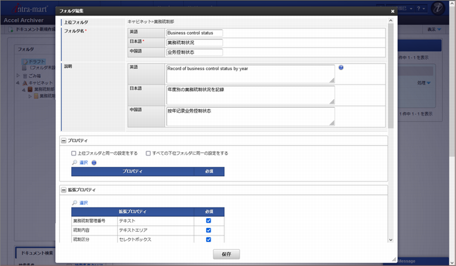 第3層以降のフォルダを登録/編集します。 各ロケールのフォルダ名、各ロケールの説明を選択して「保存」ボタンで登録します。