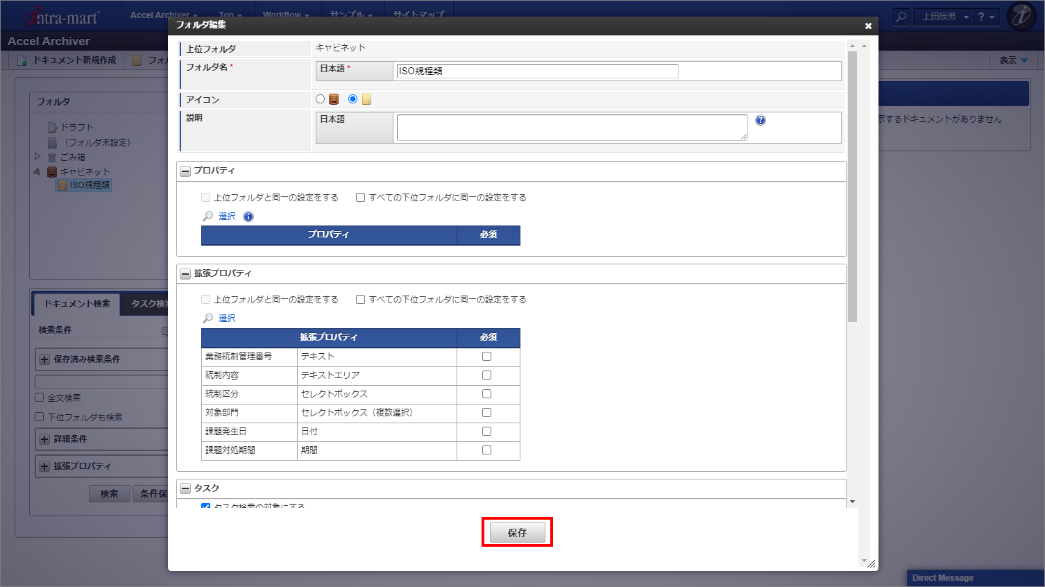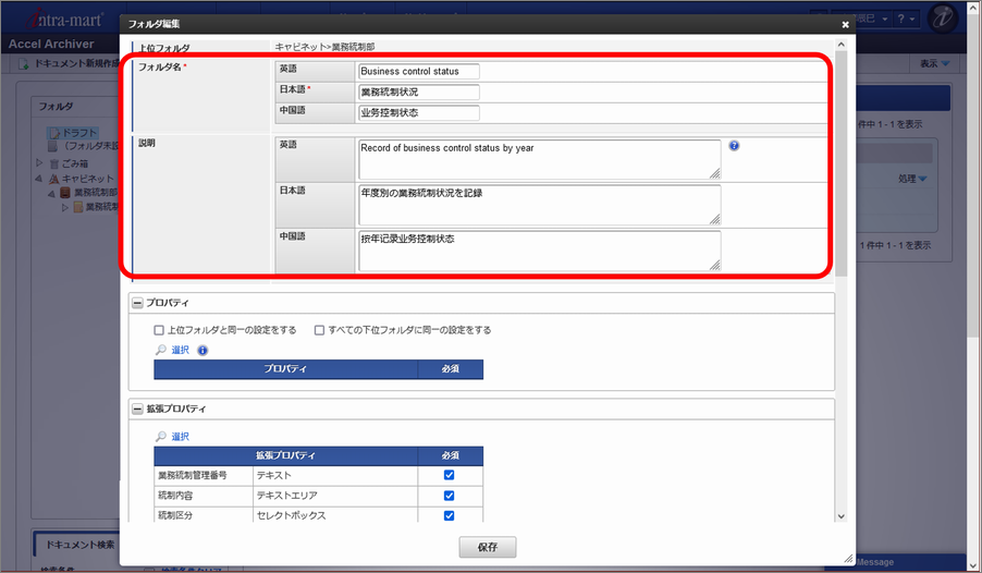 拡張プロパティの設定が完了したら「保存」ボタンをクリックします。