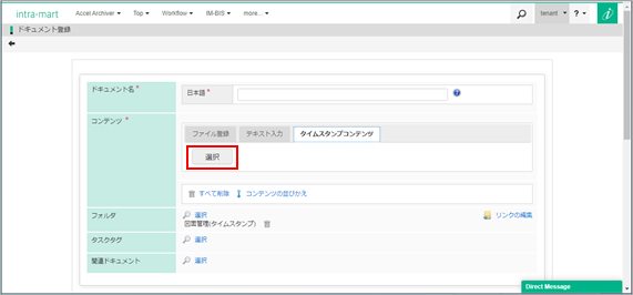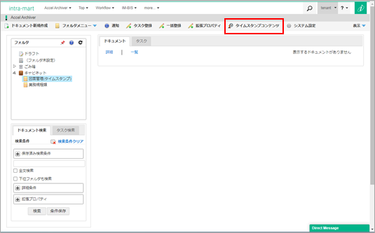 項目 説明 検索条件クリア 検索条件をクリアします。 登録日 本日、1週間以内、1ヶ月以内、期間のいずれかを指定します。 ドキュメント添付済を表示 既にドキュメントに添付されたコンテンツを表示します。 処理結果 成功:タイムスタンプ付与成功したコンテンツを検索します。