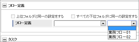 ・プロパティを上位フォルダと同一の設定とする場合、「上位フォルダと同一の設定をする」を有効にしてください。・設定したプロパティを下位フォルダに反映する場合、「すべての下位フォルダに同一の設定をする」を有効にしてください。反映する対象はフォルダのみであり、ドキュメントには影響しません。・「ワークフロー連携」プロパティを設定する際にはワークフローのフロー定義情報を事前作成してください。作成方法は 「IM-Workflow 管理者操作ガイド」を参照してください。作成するフローのコンテンツ定義は「Accel Archiver」を指定してください。また、コンテンツIDが「wdc_contents_0001」のコンテンツ定義は作成しないようにしてください。・フロー定義を設定すると、このフォルダ配下に作成するドキュメントのワークフローを制限できます。コラム