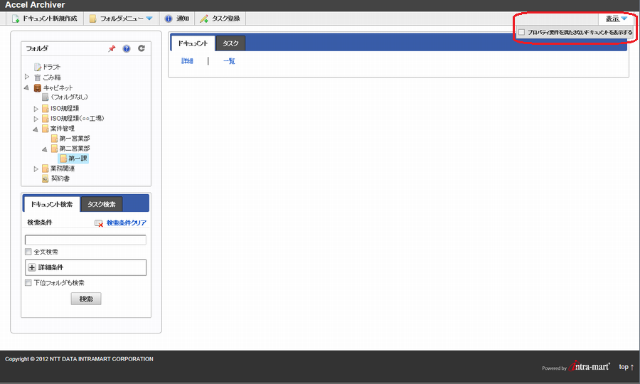 「プロパティ要件を満たさないドキュメントを表示する」をクリックし、表示モードを切り替えます。