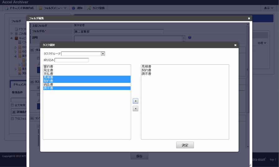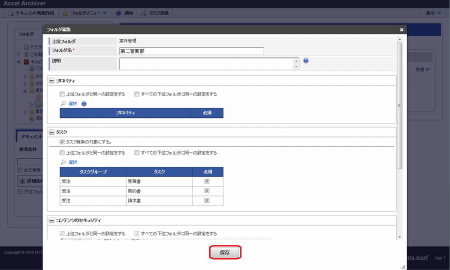 フォルダには、保存すべきドキュメントのタスク「フォルダタスク」を設定します。
