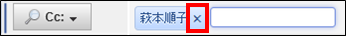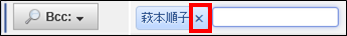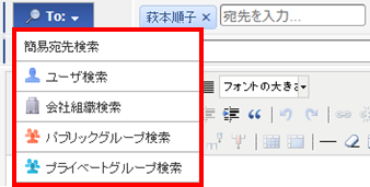 ■ 宛先の設定について(TO、CC、BCC共通)1. 入力についてユーザのみ直接入力することができます。入力はユーザ名とユーザコートを入力でき、オートコンプリートで選択候補を表示します。既に宛先に設定されている場合は入力を取り消します。宛先の表示は以下のようになります。ユーザ