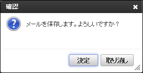 項目 説明 送信 メール作成画面「送信」をクリックすると、メールを送信します。処理実行前にメッセージダイアログを表示して、処理継続の確認を行います。(1)メッセージダイアログで「決定」を実行します。(2)メールを送信します。(3)メール作成画面を閉じます。(4)メイン画面のフォルダツリーとメール一覧を再表示します。(5)メイン画面のデータ使用量を再表示します。全ての処理が完了すると、成功メッセージボックスを表示します。メッセージダイアログで「取り消し」を実行した場合は処理を中止します。保存 メール作成画面「保存」をクリックすると、メールを保存します。処理実行前にメッセージダイアログを表示して、処理継続の確認を行います。(1)メッセージダイアログで「決定」を実行します。(2)メールを保存します。(3)メール作成画面を閉じます。(4)メイン画面のフォルダーツリーとメール一覧を再表示します。(5)メイン画面のデータ使用量を再表示します。全ての処理が完了すると、成功メッセージボックスを表示します。メッセージダイアログで「取り消し」を実行した場合は処理を中止します。プレビュー メール作成画面「プレビュー」をクリックすると、入力した内容を送信前に確認できるメール作成プレビュー画面を表示します。メール作成プレビュー画面については「 メール作成プレビュー画面 」を参照してください。
