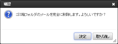 項目 説明 メール作成 受信 ツールバー「受信」をクリックすると、メールを受信することができます。 ゴミ箱を空にする ツールバー「ゴミ箱を空にする」をクリックすると、ゴミ箱フォルダ内のメールとフォルダを完全に削除することができます。処理実行前にメッセージダイアログを表示して、処理継続の確認を行います。(1)メッセージダイアログで「決定」を実行します。(2)ゴミ箱フォルダ内(配下を含みます)のメールとフォルダを完全に削除します。(3)メイン画面のフォルダツリーを再表示します。削除前にゴミ箱配下のフォルダを選択していた場合は、ゴミ箱フォルダが選択されます。(4)メイン画面のメール一覧にゴミ箱またはゴミ箱配下のメール一覧を表示していた場合、メール一覧を再表示します。(5)メイン画面のメールプレビューに削除対象のメールを表示していた場合、メールプレビューは空欄を表示します。全ての処理が完了すると、成功メッセージボックスを表示します。メッセージダイアログで「取り消し」を実行した場合は処理を中止します。コラム
