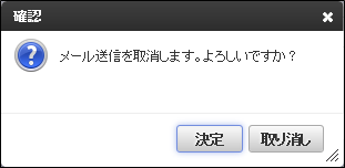 閲覧状況表示ダイアログを閉じます。メール送信取消 メールの送信を取り消します。処理実行前にメッセージダイアログを表示して、処理継続の確認を行います。(1) メッセージダイアログで「決定」を実行します。(2) メールの送信を取り消し、下書きメールに変更します。この時、メールは下書きフォルダに格納されます。(3) 閲覧状況表示ダイアログを閉じます。(4) メイン画面のフォルダツリーとメール一覧を再表示します。(5) 処理対象のメールをメイン画面のメールプレビューに表示している場合、メールプレビューを空欄にします。全ての処理が完了すると、成功メッセージダイアログを表示します。メッセージダイアログで「取り消し」を実行した場合は処理を中止します。注意