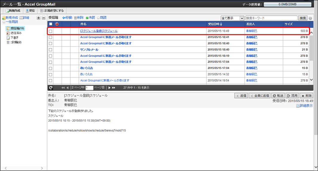 IM-FileExchange Collaboration スケジュール配信メールをGroupMailで受信した場合
