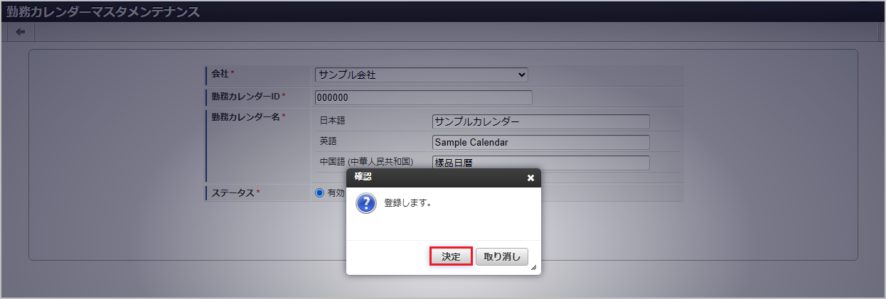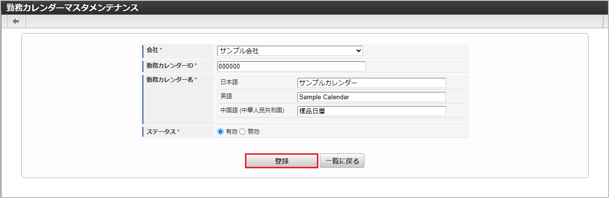 本項では、勤務カレンダーマスタの設定方法を説明します。