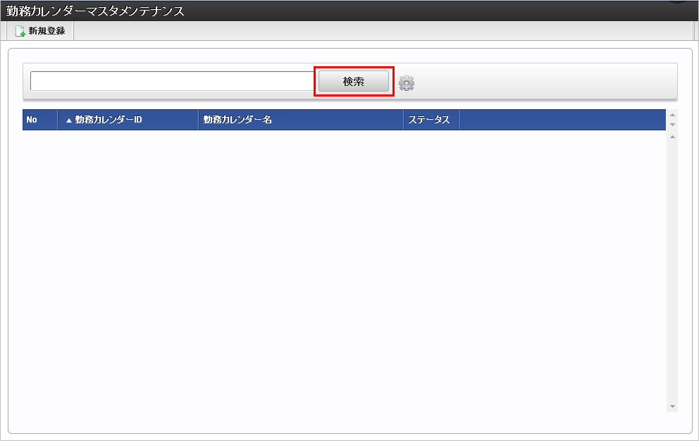 検索欄に検索したい勤務カレンダーの以下の項目を入力して「検索」をクリックすると、結果を一覧に表示します。
