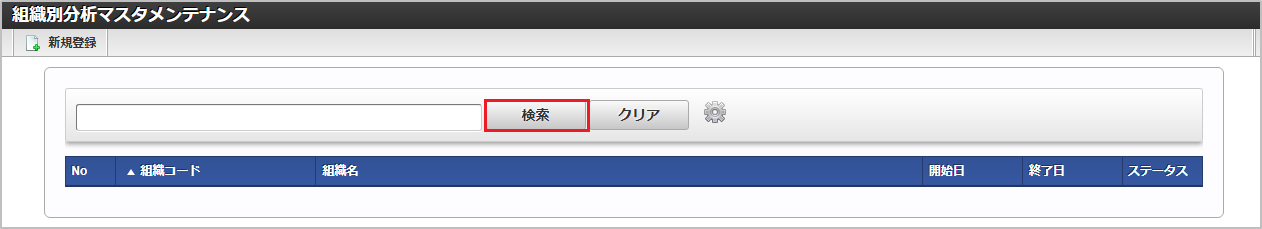 「サイトマップ」→「勤務管理」→「マスタメンテナンス」→「組織別分析」をクリックします。 一覧画面で「検索」をクリックします。コラム