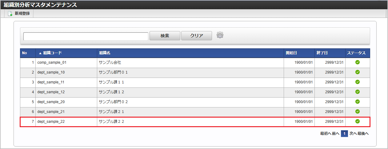 組織コード 組織名 一覧画面の対象データが表示されている行をクリックします。コラム