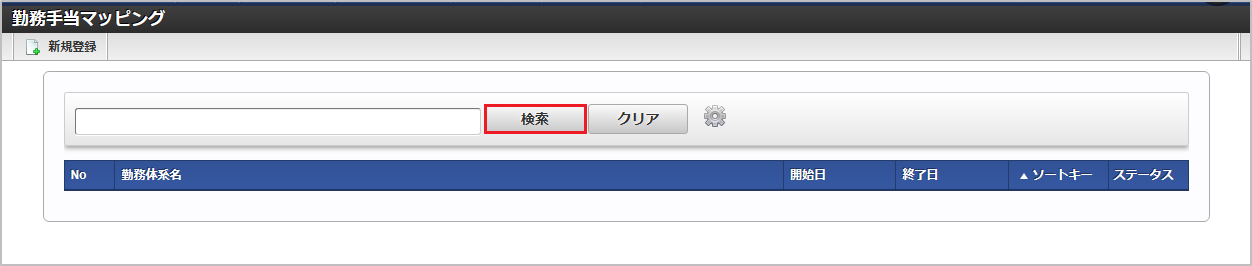 「サイトマップ」→「勤務管理」→「マスタメンテナンス」→「勤務手当マッピング」をクリックします。 一覧画面で「検索」をクリックします。コラム