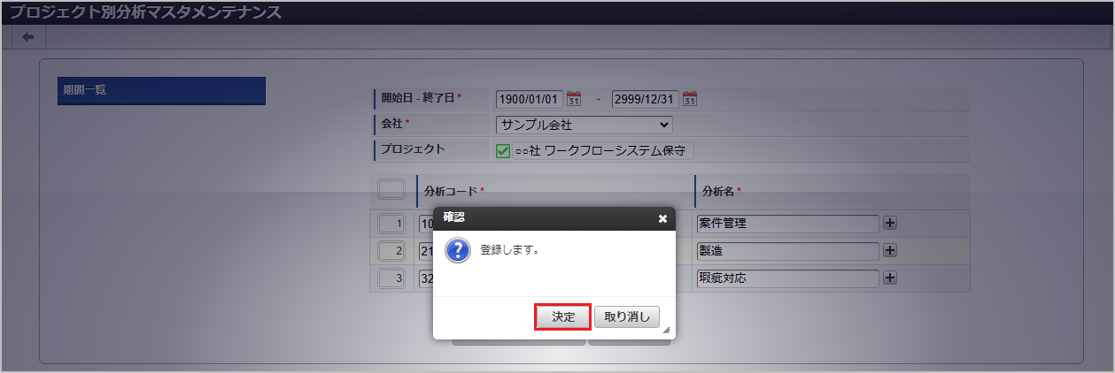 本項では、プロジェクト別分析マスタの設定方法を説明します。