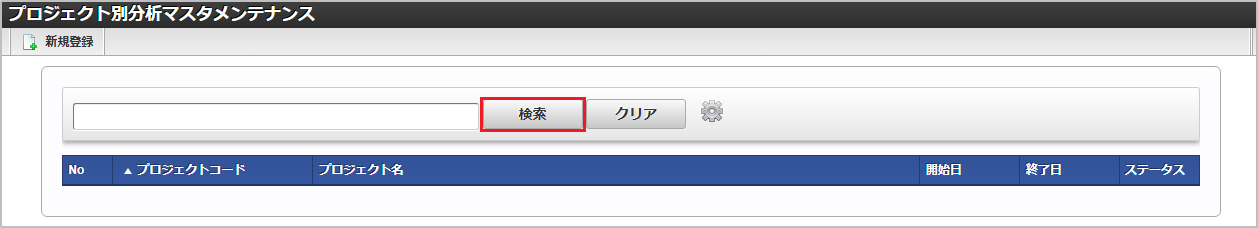 「サイトマップ」→「勤務管理」→「マスタメンテナンス」→「プロジェクト別分析」をクリックします。 一覧画面で「検索」をクリックします。コラム