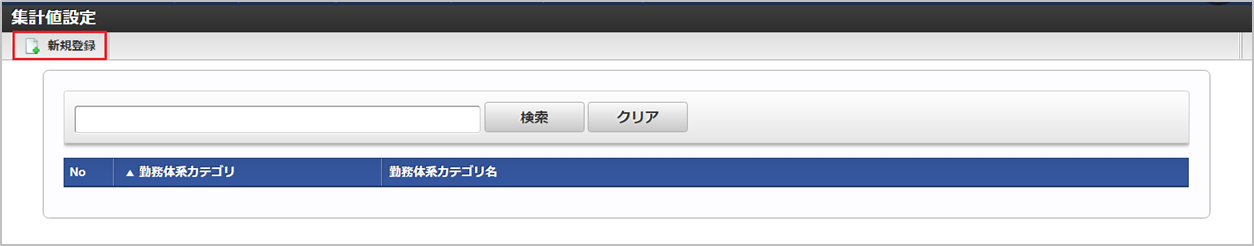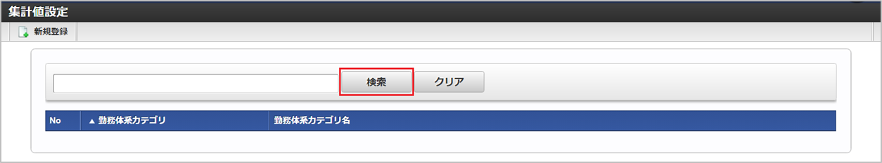 「サイトマップ」→「勤務管理」→「マスタメンテナンス」→「集計値設定」をクリックします。 一覧画面で「検索」をクリックします。コラム