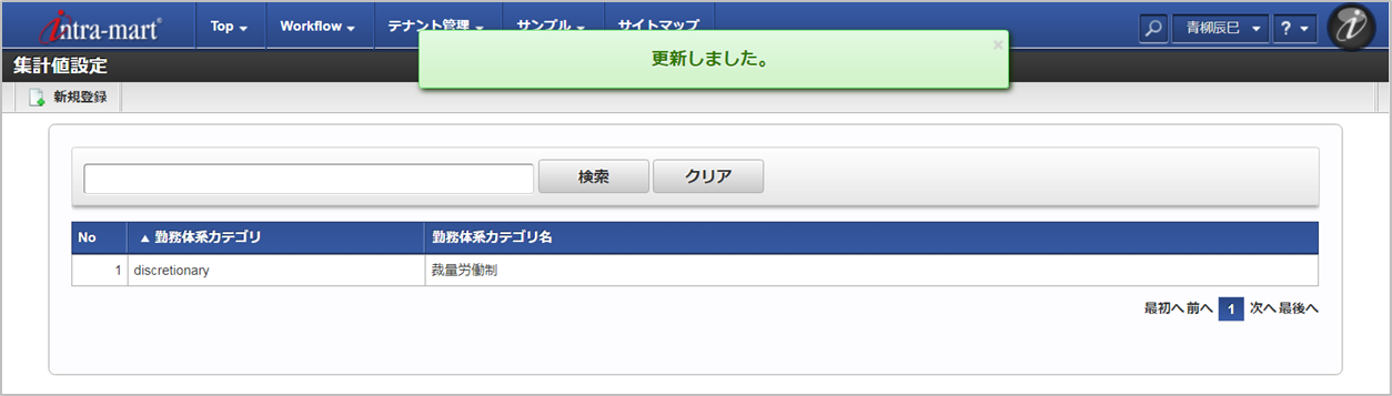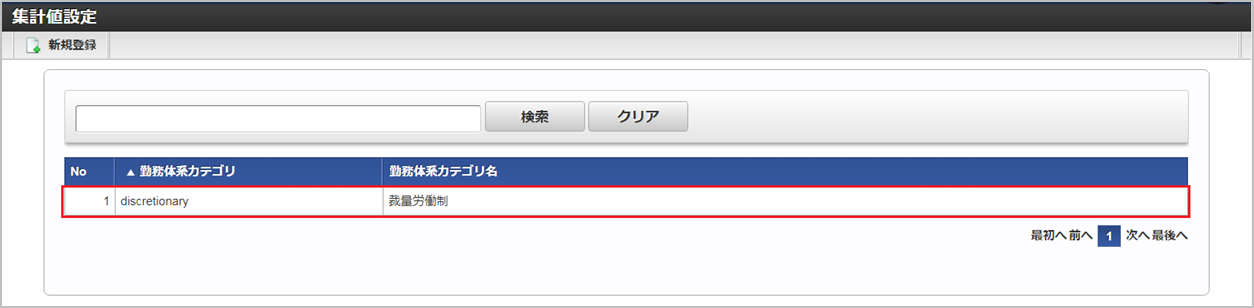 勤務体系カテゴリ 勤務体系カテゴリ名 一覧画面の対象データが表示されている行をクリックします。コラム