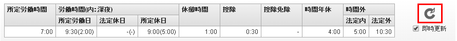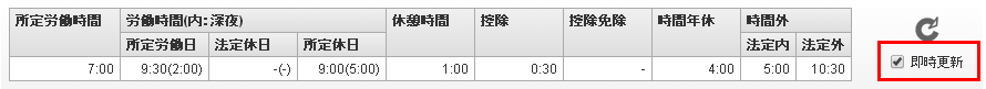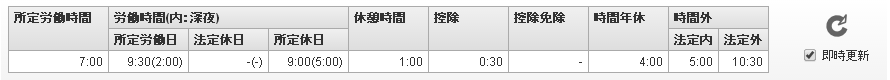 所定労働時間その日の所定労働時間です。労働時間(内:深夜)