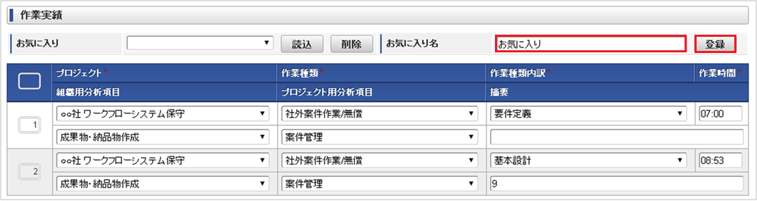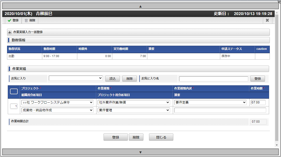 本項では、作業実績の入力方法を説明します。