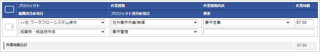 作業時間合計対象締め期間の作業時間の合計を表示します。 実労働時間合計対象締め期間の労働時間の合計を表示します。コラム