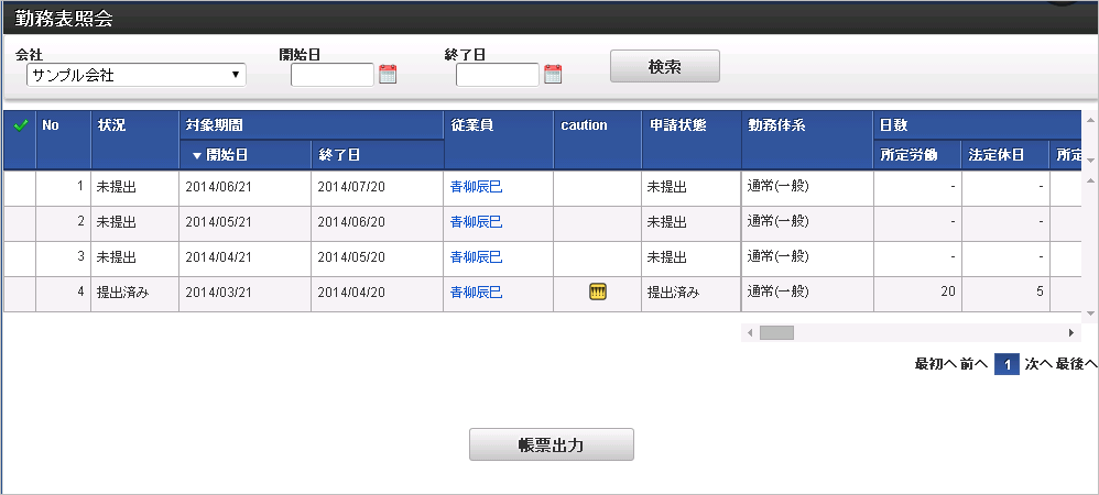 プログラミング例(Controller)package jp.co.slcs.kaiden.v2.base.feature.action.kaiden; import java.util.HashMap; import java.util.Map; import org.springframework.beans.factory.config.ConfigurableBeanFactory; import org.springframework.context.annotation.Scope; import org.springframework.stereotype.Controller; import org.springframework.ui.Model; import org.springframework.web.bind.annotation.RequestMapping; import jp.co.slcs.kaiden.v2.base.feature.dto.kaiden.Fs2ListDto; import jp.co.slcs.kaiden.v2.base.feature.form.kaiden.Fs2ListForm; import jp.co.slcs.kaiden.v2.base.foundation.exception.KaidenSystemException; import jp.co.slcs.kaiden.v2.base.foundation.fs2.AbstractFs2ListController; import jp.co.slcs.kaiden.v2.base.foundation.fs2.AbstractFs2ListDto; import jp.co.slcs.kaiden.v2.base.foundation.fs2.AbstractFs2ListForm; /** * FS2ListのControllerクラスです。 */ @Controller @Scope(ConfigurableBeanFactory.SCOPE_PROTOTYPE) @RequestMapping("kaiden/v2/labor/dailyApprove") public class Fs2ListController extends AbstractFs2ListController { /** Form. **/ public Fs2ListForm fs2ListForm; /** Dto. **/ public Fs2ListDto fs2ListDto; /** * 一覧検索結果ページの返却. * * @return 一覧検索結果ページ * @throws KaidenSystemException システムエラー */ @RequestMapping(value = "search") public String search(HttpServletRequest request, HttpServletResponse response, Fs2ListForm form, Model model) throws KaidenSystemException { setForm(form); super.index(request, response, fs2ListForm, model); } /** * 検索結果をサブクラスから返却. * * @return 検索結果 * @throws KaidenSystemException システムエラー */ @Override protected Map<String, Object> getSearchResultData() throws KaidenSystemException { Map<String, Object> criteria = new HashMap<String, Object>(); criteria.put("key01", "value01"); criteria.put("key02", "value02"); return criteria; } /** * Formのインスタンスを返却. * * @return 対象検索用Form */ @Override protected AbstractFs2ListForm getForm() { return fs2ListForm; } /** * DTOのインスタンスを返却. * * @return 対象検索用DTO */ @Override protected AbstractFs2ListDto getDto() { return fs2ListDto; } /** * Formを設定. * * @param form Form */ protected void setForm(Fs2ListForm form) { fs2ListForm = form; } }