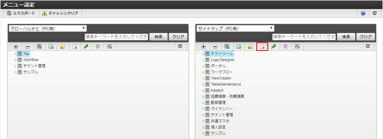 引数にクエリーIDを指定してアクセスする場合、指定したクエリーIDで検索した状態の画面が表示されます。 「新規作成」をクリックします。 メニューが作成されました。