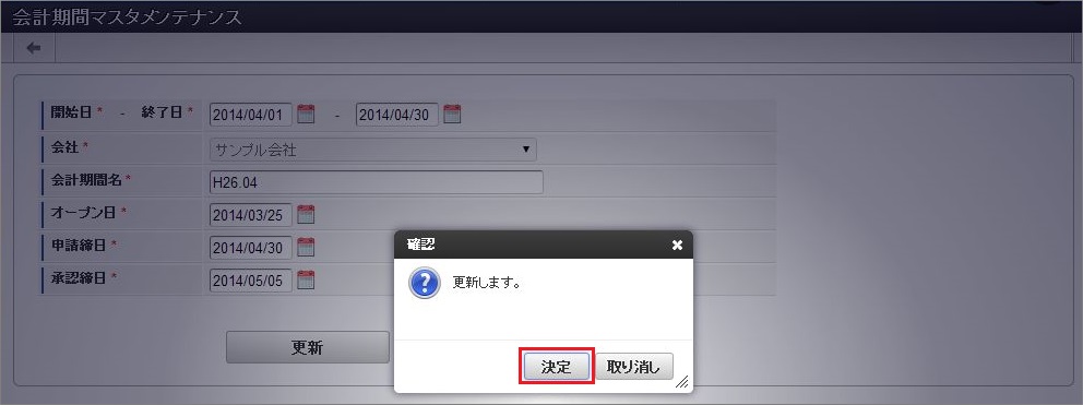 確認ポップアップが表示されますので、「決定」をクリックします。 更新することができました。