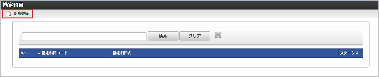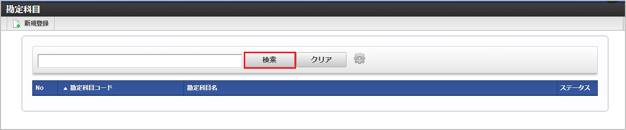 検索欄に検索したい勘定科目の以下の項目を入力して「検索」をクリックすると、結果を一覧に表示します。