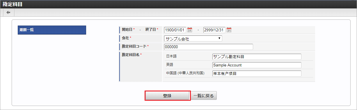 複数のロケールで利用する場合は、必要な全ロケール分のデータを作成してください。データサンプル"comp_sample_01","000000","ja","","","サンプル勘定科目","0" "comp_sample_01","000000","en","","","Sample Account","0" "comp_sample_01","000000","zh_CN","","","样品帐户科目","0"コラム