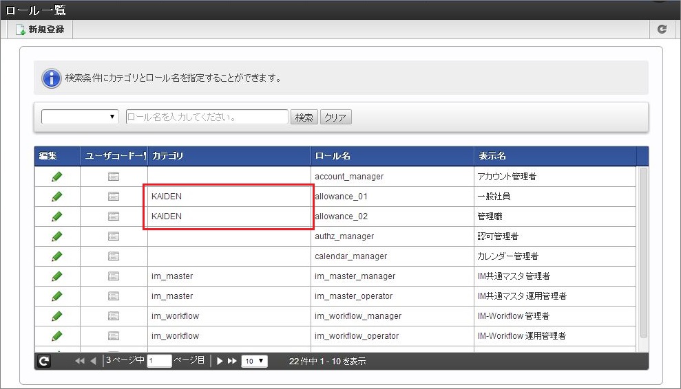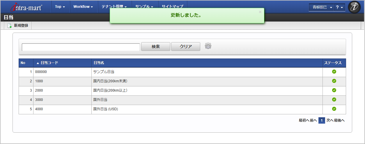一覧機能の操作方法は、 一覧画面の操作 を参照してください。 登録/更新画面で情報を編集し、「更新」をクリックします。次の項目は編集不可項目です。