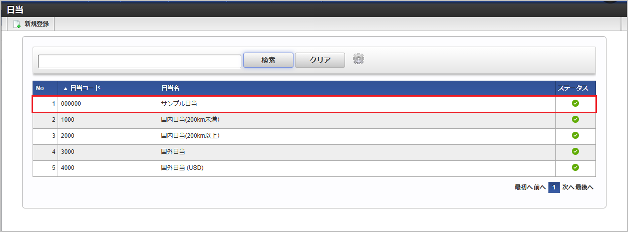 日当コード 日当名 一覧画面の対象データが表示されている行をクリックします。コラム