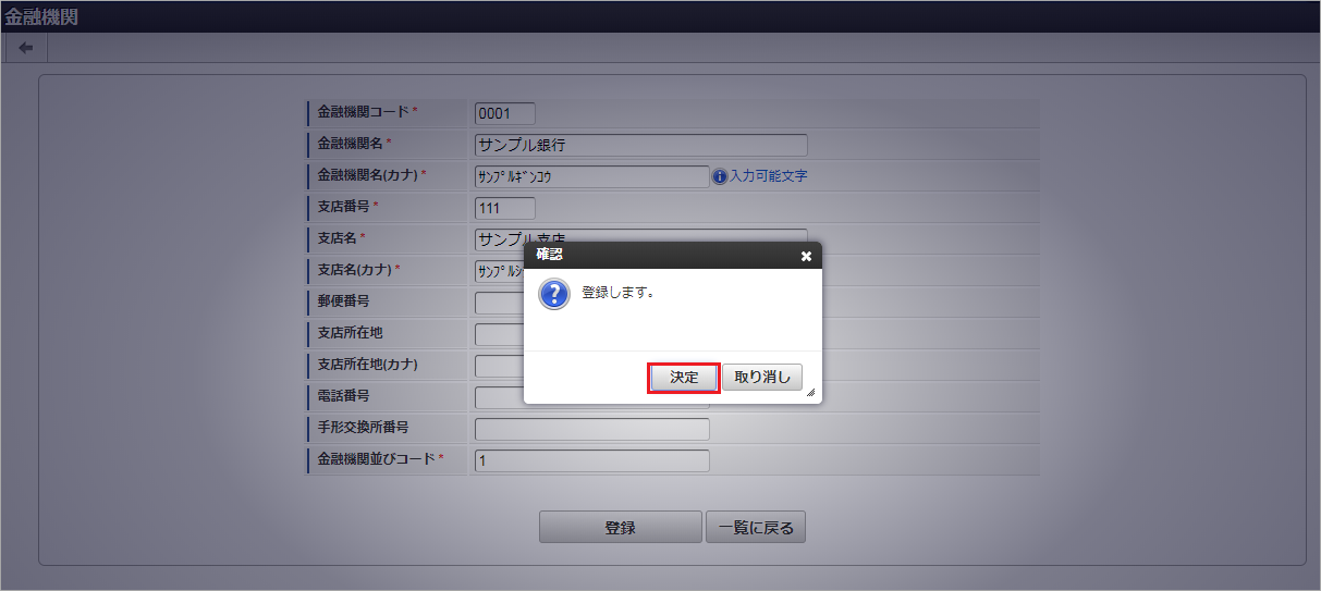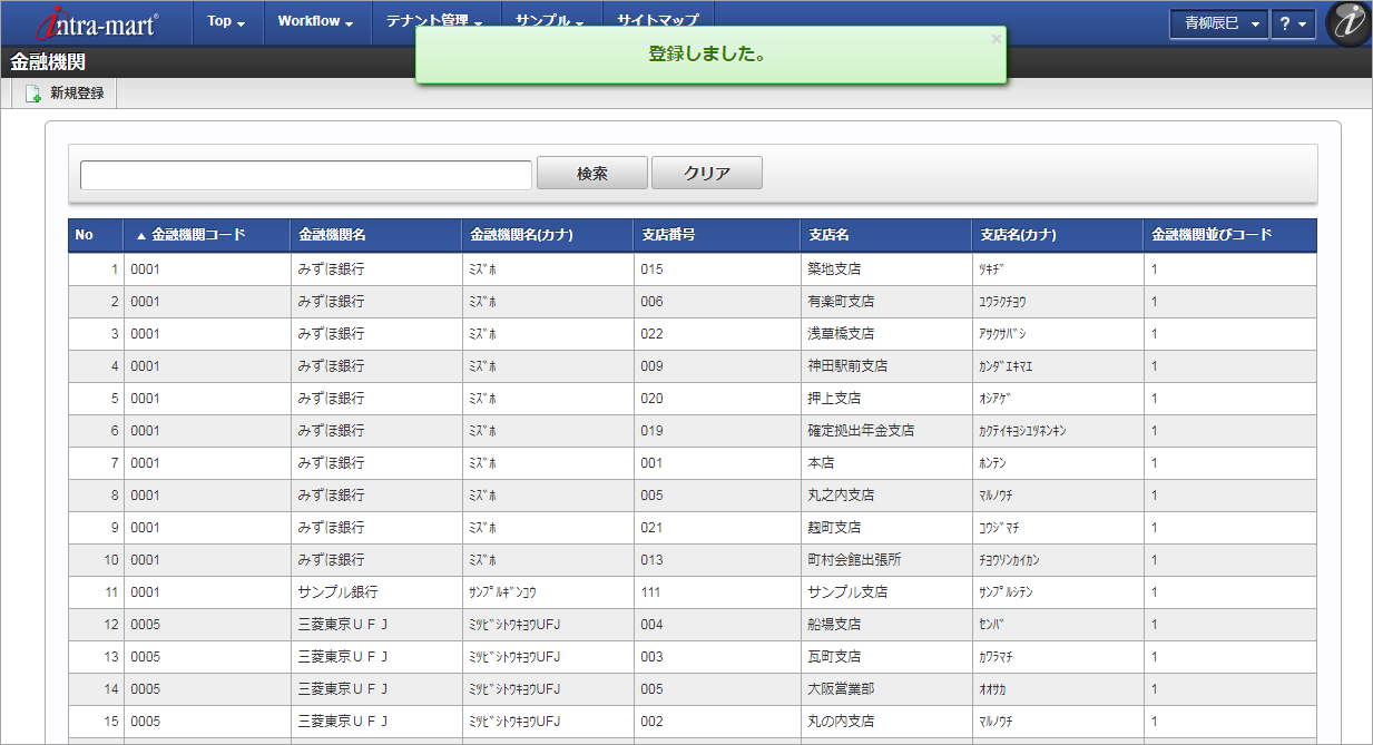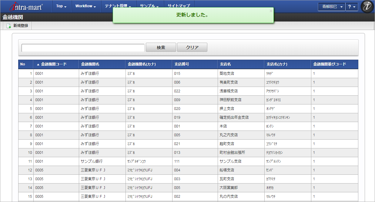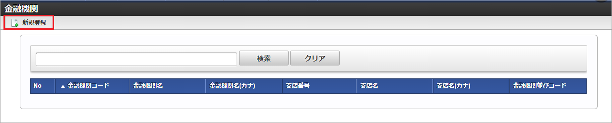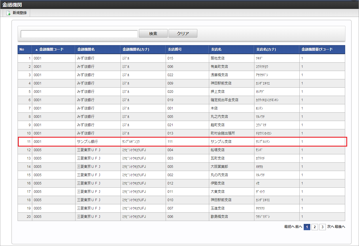 金融機関コード 金融機関名 金融機関名(カナ) 支店番号 支店名 支店名(カナ) 一覧画面の対象データが表示されている行をクリックします。コラム