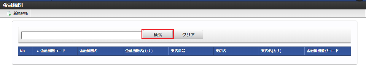 検索欄に検索したい金融機関の以下の項目を入力して「検索」をクリックすると、結果を一覧に表示します。