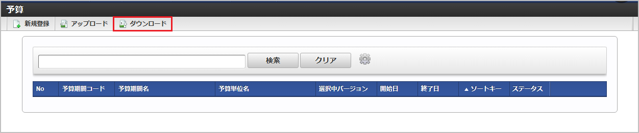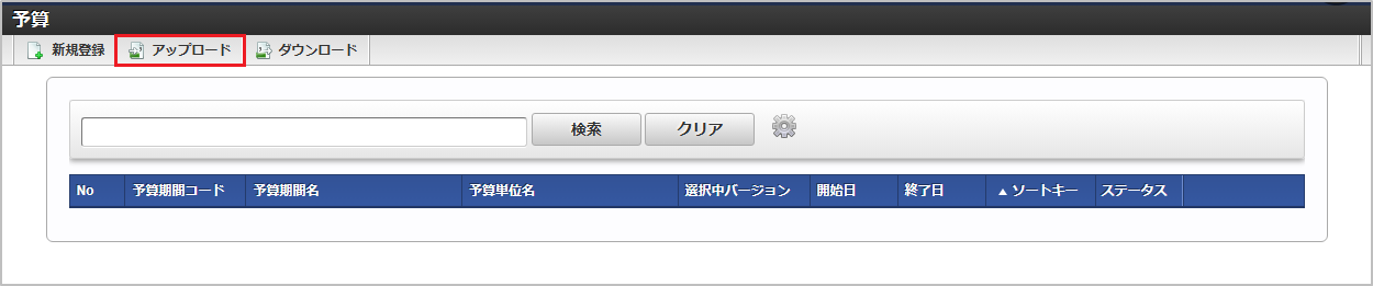 アップロードファイルの詳細は、インポートデータ作成を参照してください。 予算の情報が登録/更新されます。
