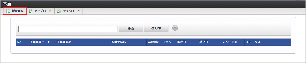 一覧機能の操作方法は、 一覧画面の操作 を参照してください。 予算明細画面表示後、「新規登録」をクリックします。 登録/更新画面で必要な情報を入力し、「登録」をクリックします。