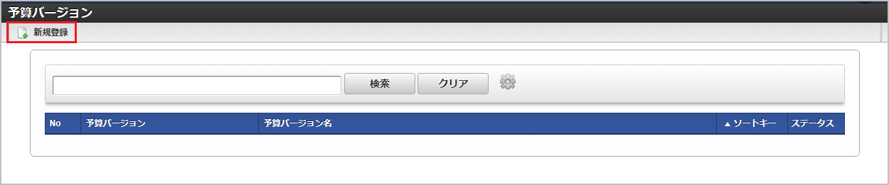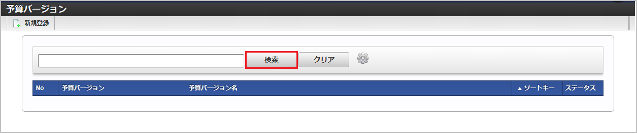 検索欄に検索したい予算バージョンの以下の項目を入力して「検索」をクリックすると、結果を一覧に表示します。