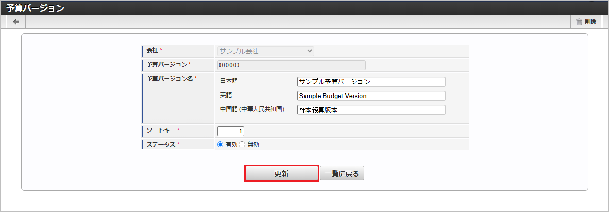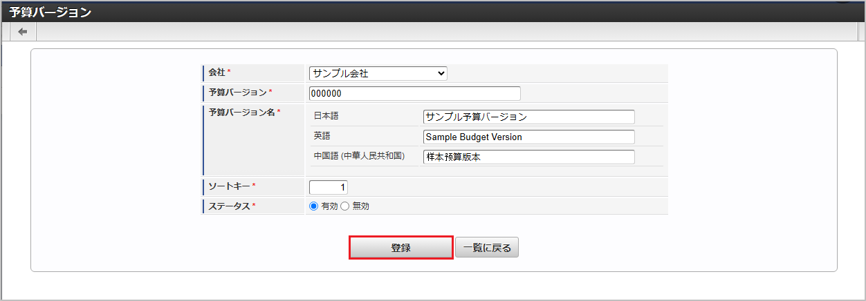 本項では、予算バージョンマスタの設定方法を説明します。