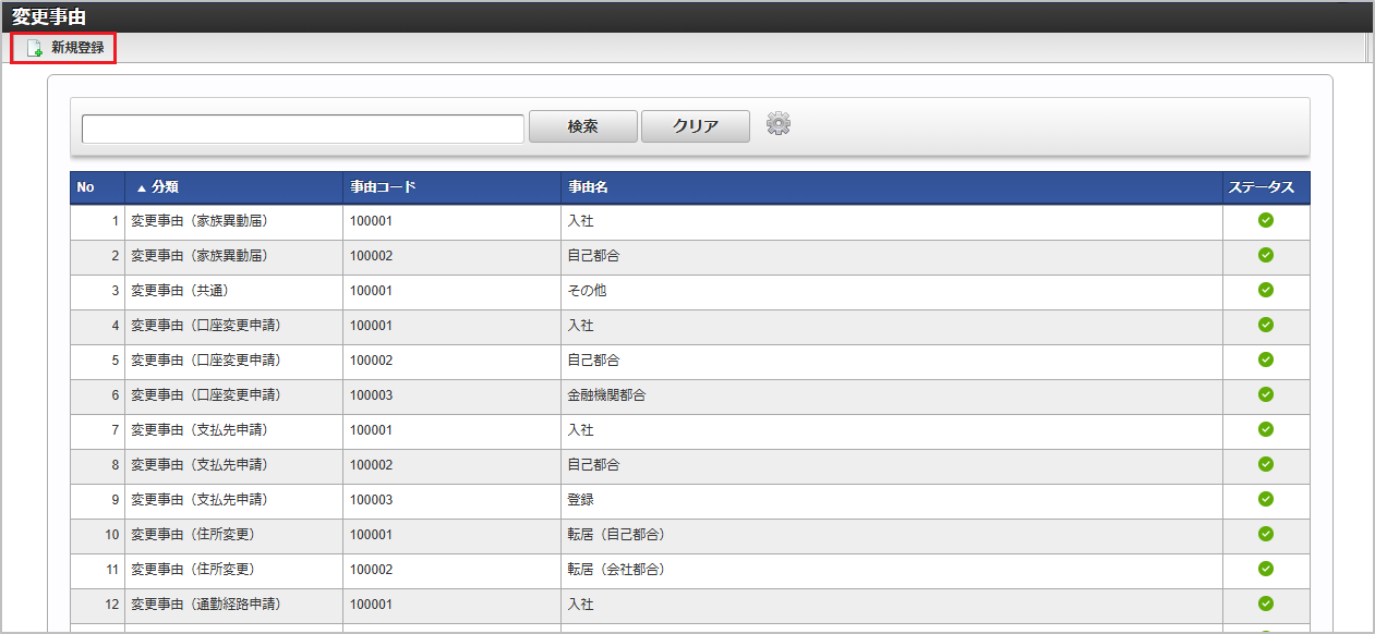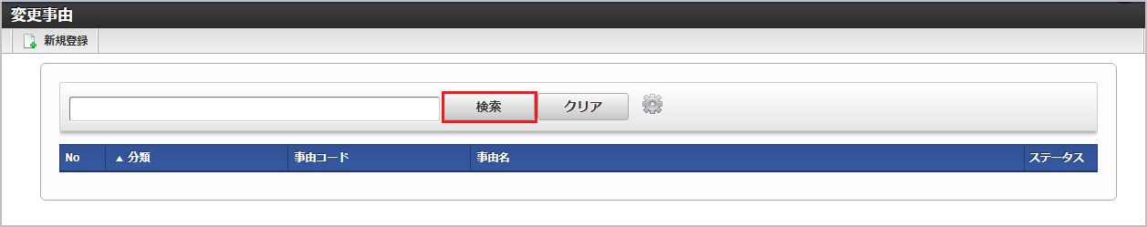 検索欄に検索したい変更事由の以下の項目を入力して「検索」をクリックすると、結果を一覧に表示します。