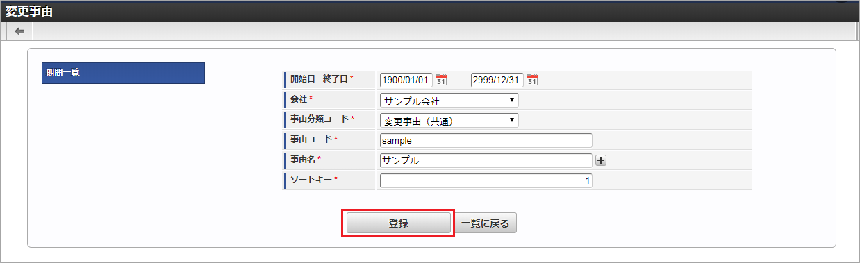 No(列) 項目名 必須 最大文字数 備考 1 会社コード ○ 100 2 期間コード 50 未設定の場合、自動的に付与されます。半角英数字、「_」「-」を設定可能です。3 開始日 10 yyyy/MM/dd形式インポートモードが4、5の場合、使用されます。4 終了日 10 yyyy/MM/dd形式インポートモードが4、5の場合、使用されます。5 削除フラグ ○ 1 0:有効1:無効(論理削除)6 ロケールID ○ 50 ja:日本語en:英語zh_CN:中国語7 事由分類コード ○ 100 8 事由コード ○ 100 9 事由名 ○ 250 10 ソートキー ○ 15 データサンプル"comp_sample_01","term01","1900/01/01","1999/12/31","1","ja","100012-1","00000","サンプル事由","1" "comp_sample_01","term01","1900/01/01","1999/12/31","1","en","100012-1","00000","Sample Reason","1" "comp_sample_01","term01","1900/01/01","1999/12/31","1","zh_CN","100012-1","00000","样本原因","1" "comp_sample_01","term02","2000/01/01","2999/12/31","0","ja","100012-1","00000","サンプル事由","1" "comp_sample_01","term02","2000/01/01","2999/12/31","0","en","100012-1","00000","Sample Reason","1" "comp_sample_01","term02","2000/01/01","2999/12/31","0","zh_CN","100012-1","00000","样本原因","1"コラム