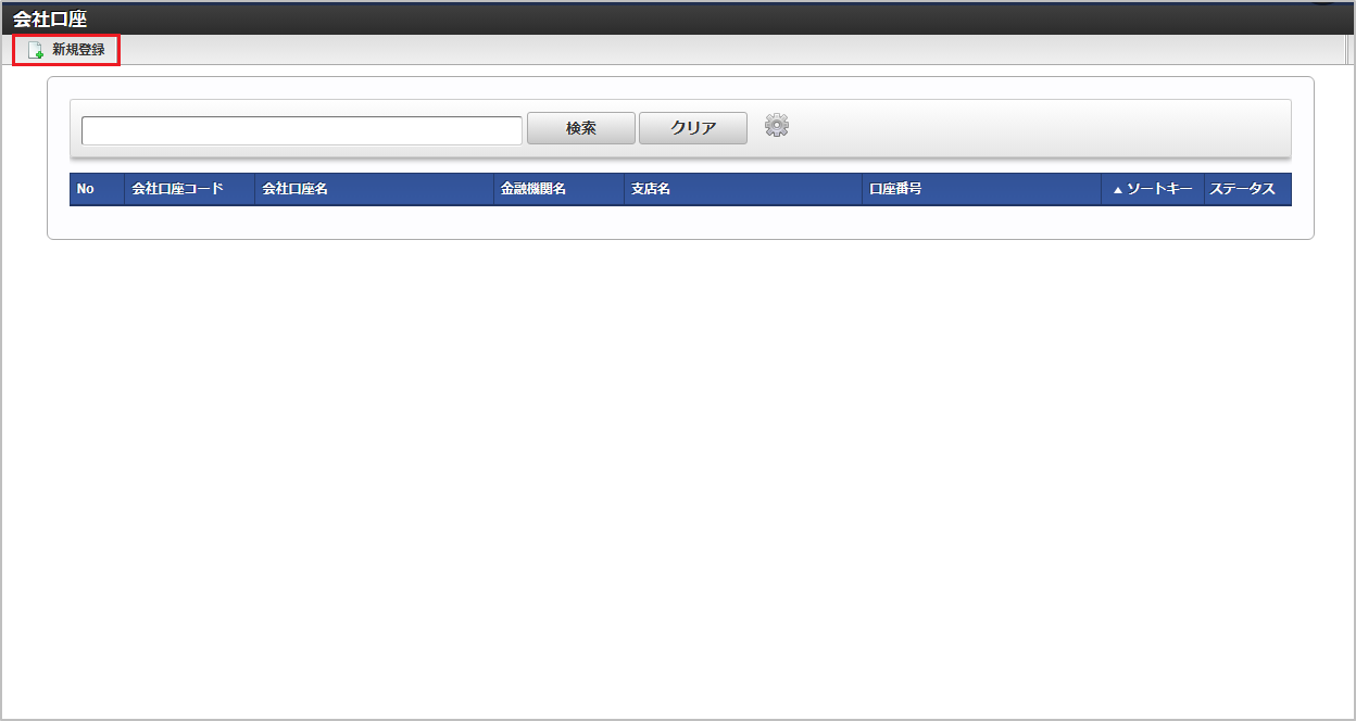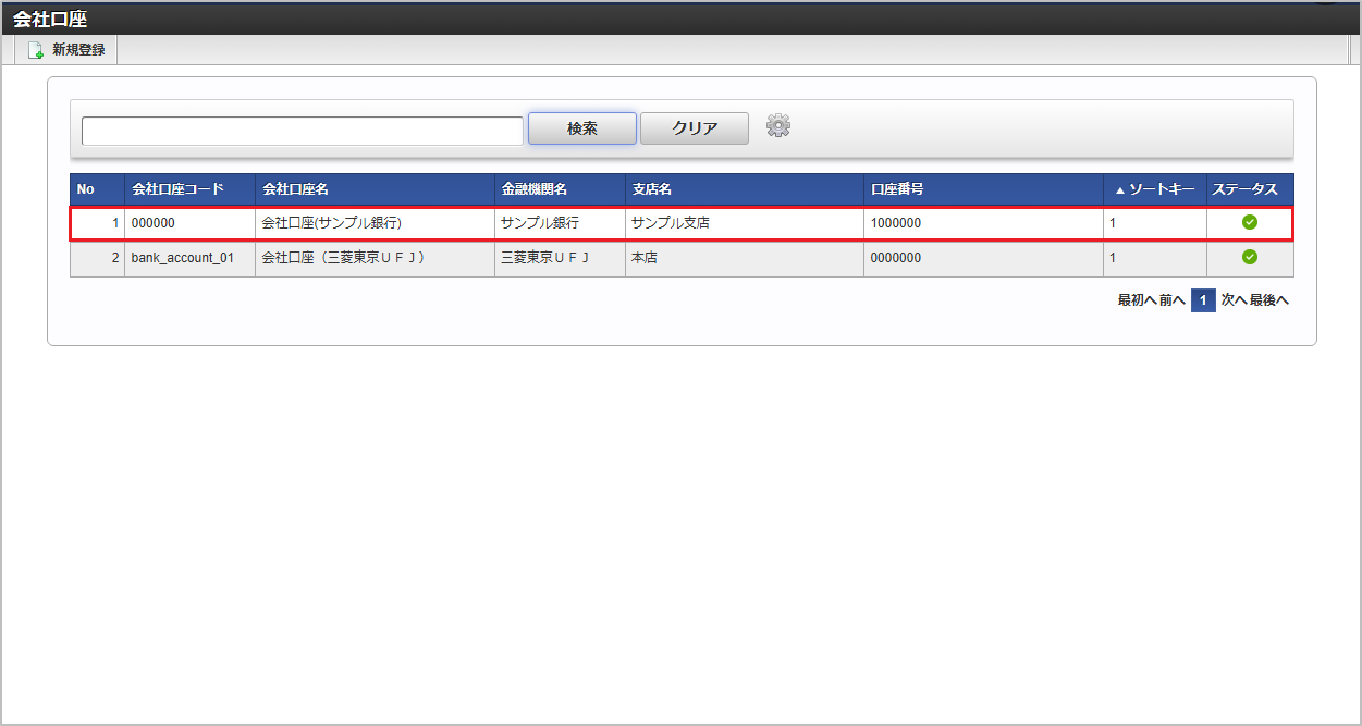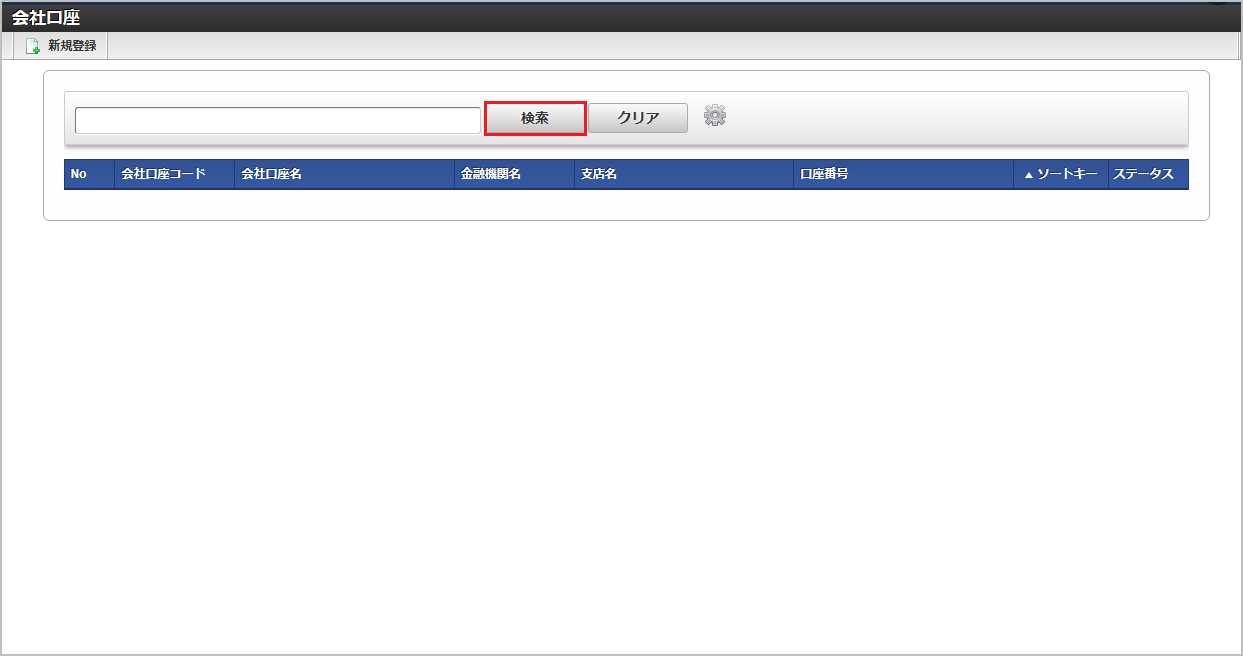 検索欄に検索したい会社口座の以下の項目を入力して「検索」をクリックすると、結果を一覧に表示します。