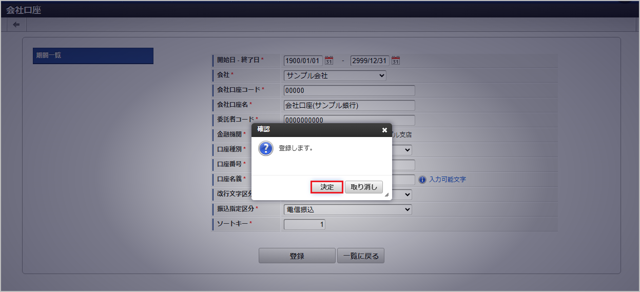 本項では、会社口座マスタの設定方法を説明します。