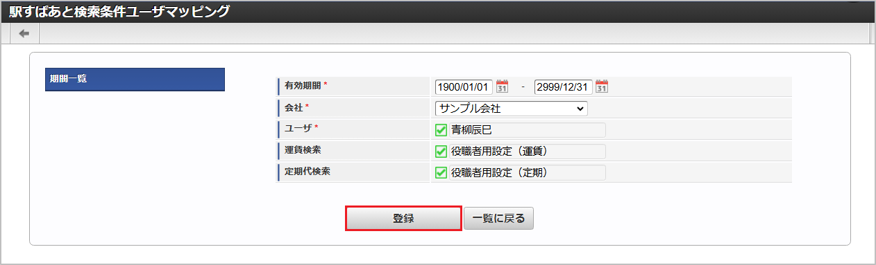 本項では、駅すぱあと検索条件ユーザマッピングマスタの設定方法を説明します。
