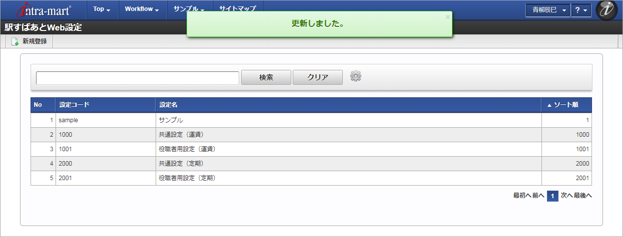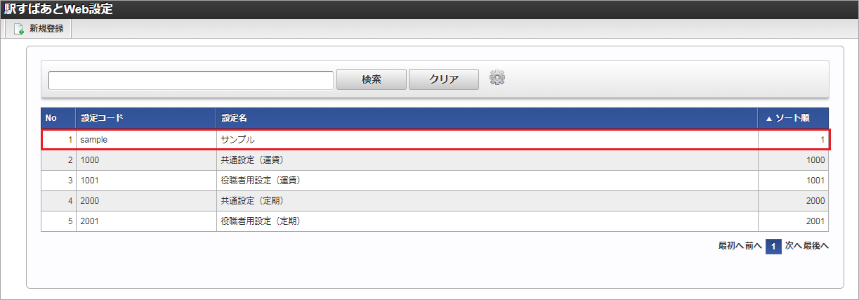 設定コード 設定名 一覧画面の対象データが表示されている行をクリックします。コラム