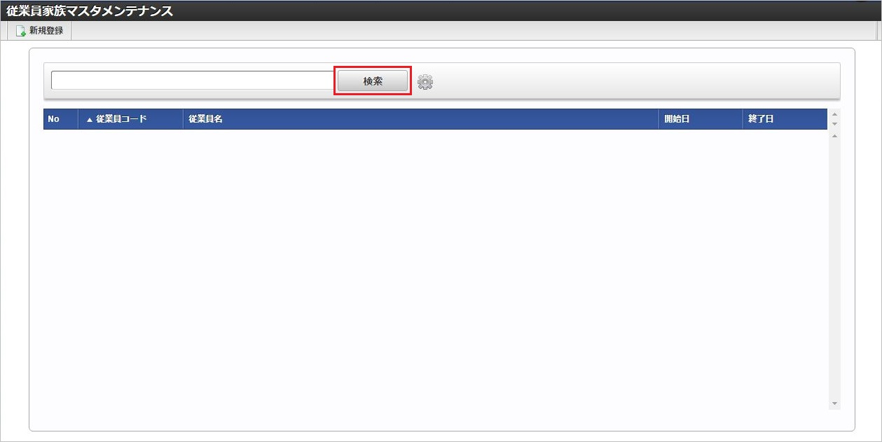 「サイトマップ」→「Kaiden!」→「マスタメンテナンス」→「従業員家族」をクリックします。 一覧画面で「検索」をクリックします。コラム