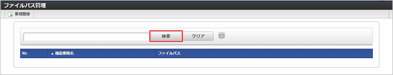 検索欄に検索したいファイルパス管理の以下の項目を入力して「検索」をクリックすると、結果を一覧に表示します。
