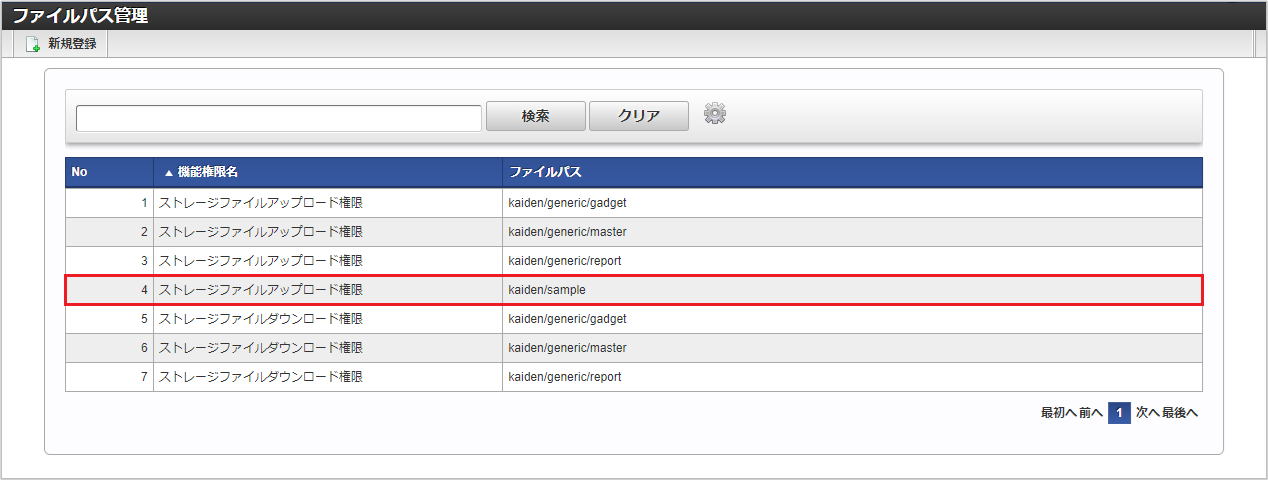 「サイトマップ」→「Kaiden!」→「ファイル操作」→「ファイルパス管理」をクリックします。 一覧画面表示後、「新規登録」をクリックします。 登録/更新画面で必要な情報を入力し、「登録」をクリックします。