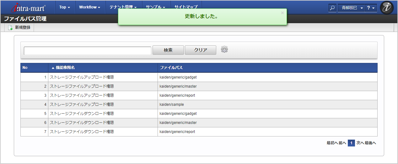 機能権限名 ファイルパス 一覧画面の対象データが表示されている行をクリックします。コラム